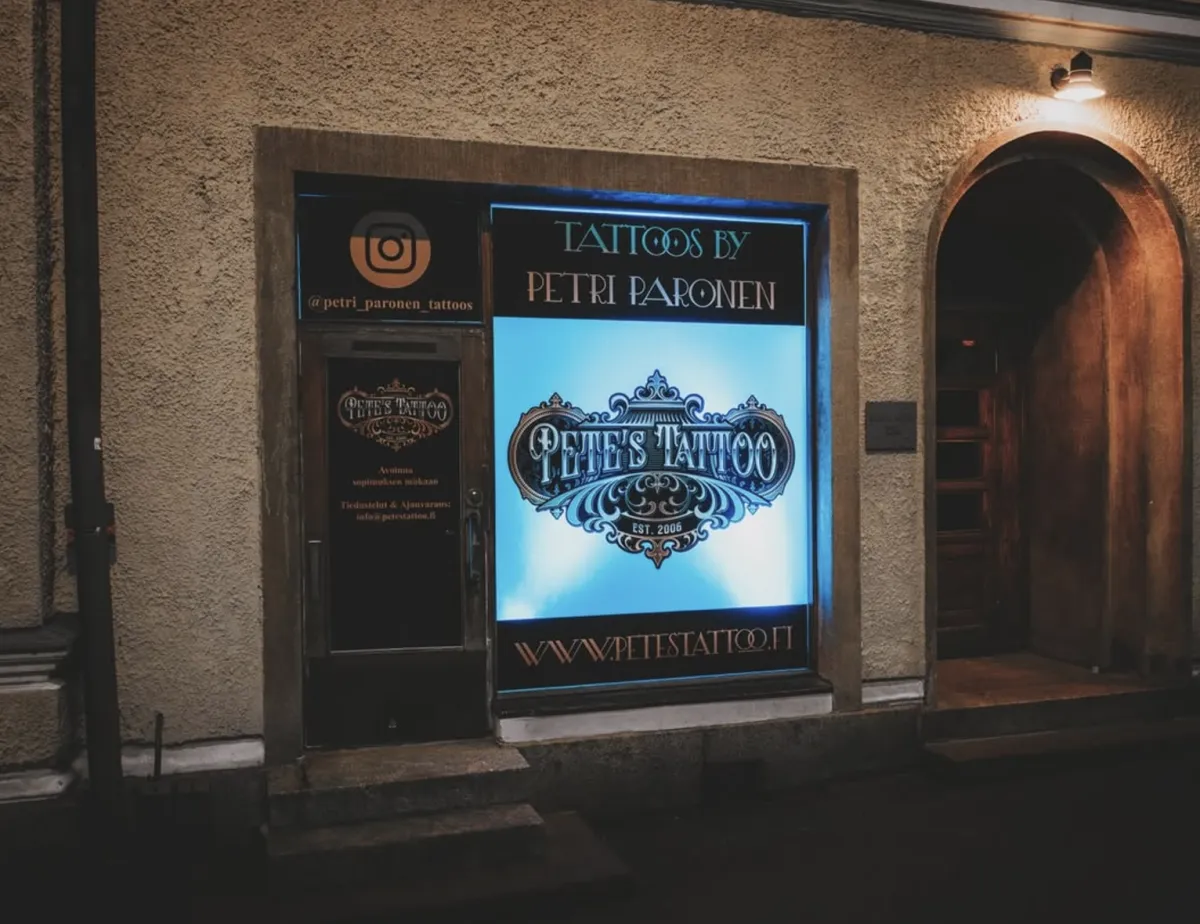 Tervetuloa Pete's Tattoo -studioon, taiteelliseen ja ammattimaiseen tatuointistudioon aivan Helsingin sydämessä osoitteessa Snellmaninkatu 15.